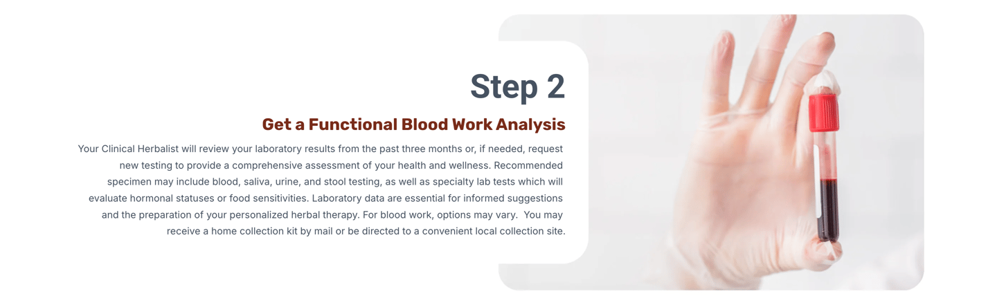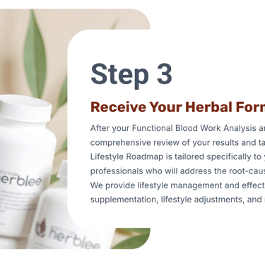 Each herbal formula is prepared by a Clinical Herbalist, specific to one's individual Lab-Work Analysis,