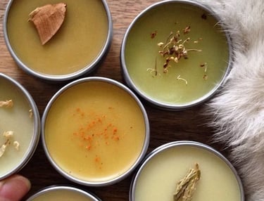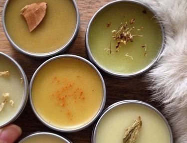 Herbal salves provide a concentrated and targeted application for skin nourishment, muscle aches, pain, dry, itchy, or damaged skin.